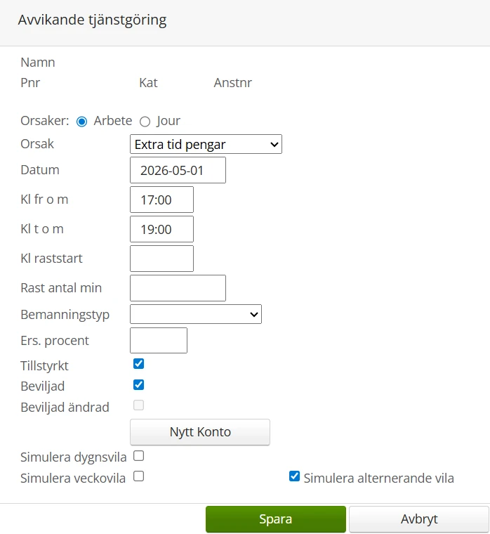 Du som chef och chefsstöd har nu möjlighet att kontrollera så att reglerna för alternerande dygnsvila inte bryts när Avvikande tjänstgöring och Turbyte rapporteras in i Självservice.